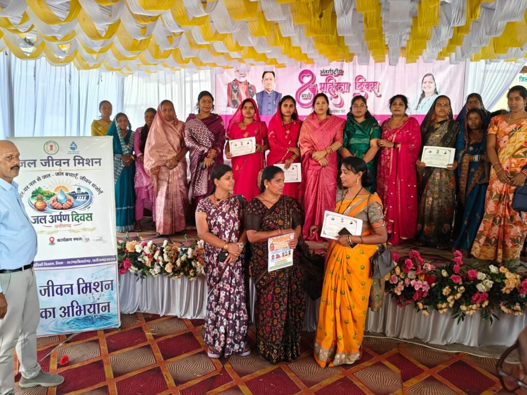 तत्पश्चात ग्राम पंचायत अमलीपाली ‘ब’ की महिला सरपंच रत्ना निरंजन पटेल, ग्राम पंचायत बटाऊपाली ‘ब’ की महिला सरपंच फूलबाई सिदार और ग्राम पंचायत बोइरडीह की महिला सरपंच दामेश्वरी साहू को सभी मुख्य अतिथियों द्वारा प्रमाण पत्र देकर सम्मानित किया गया। इनके अलावा स्वसहायता समूह, जल बहिनियों एवं समिति की महिला सदस्यों का भी प्रमाण पत्र देकर सम्मान किया गया। उपस्थित अतिथियों एवं अधिकारियों ने जल की बचत, वर्षा जल संचयन तथा पानी के समुचित उपयोग के प्रति सभी को जागरूक रहने का संदेश दिया, जिससे आने वाली पीढ़ियों के लिए जल संसाधनों को सुरक्षित रखा जा सके। इसके सफल होने के लिए सभी से जल शपथ भी ग्रहण करवाया गया।