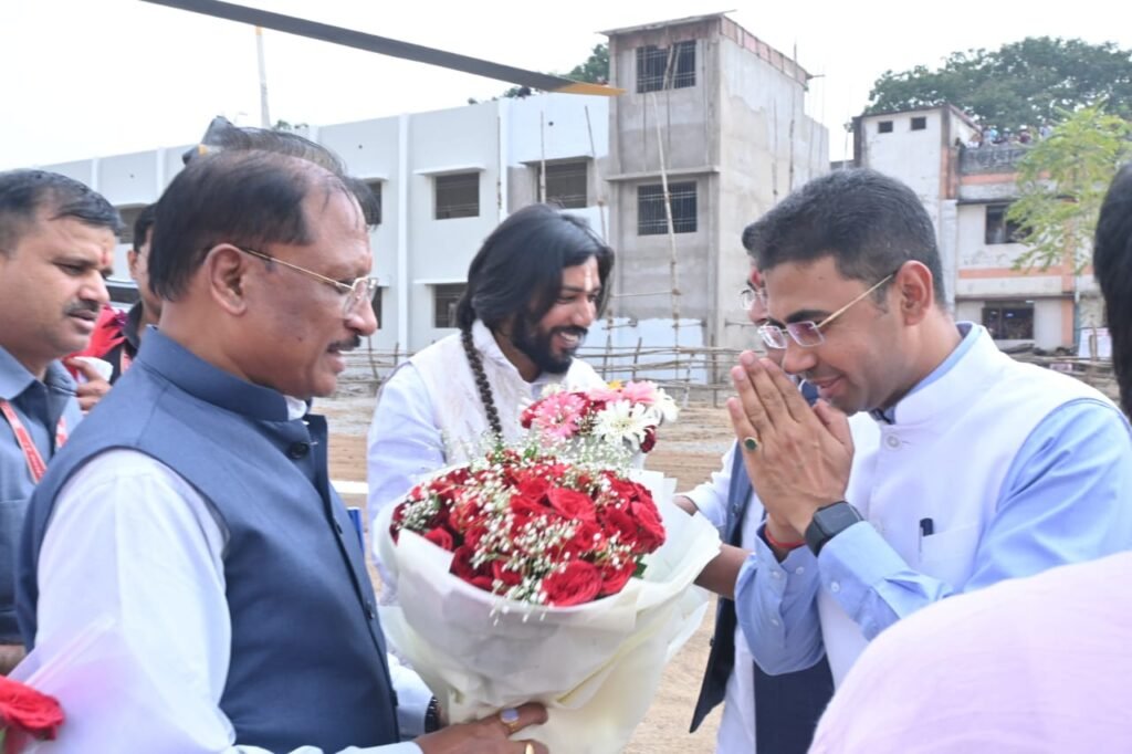 मुख्यमंत्री का हेलीपेड पर आत्मीय स्वागत