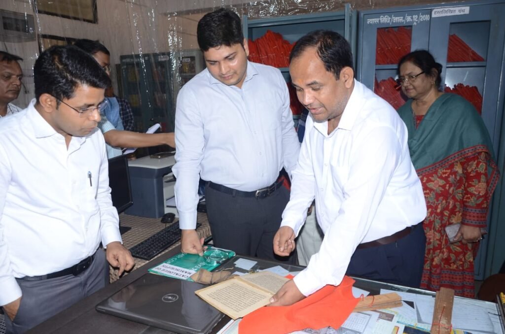कलेक्टर पहुंचे शासकीय संस्कृत कॉलेज, पाण्डुलिपि एवं ताम्रपत्र का किया अवलोकन