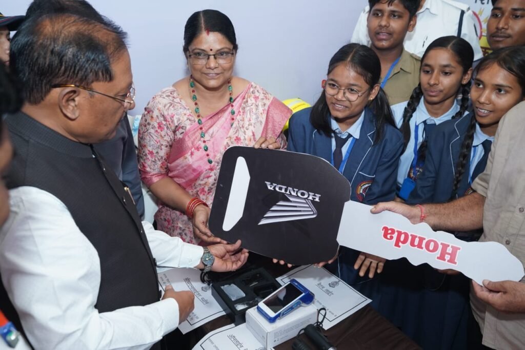 *प्रोजेक्ट सिग्नल के विजेता विद्यार्थियों को मुख्यमंत्री ने सौंपी एक्टिवा की चाबी* *यातायात जागरूकता मॉडल में स्वामी आत्मानंद अडवानी आर्लिकॉन स्कूल बिरगांव अव्वल*रायपुर, 25 अप्रैल 2026। मुख्यमंत्री श्री विष्णुदेव साय के मार्गदर्शन एवं कलेक्टर डॉ. गौरव सिंह के निर्देशानुसार जिला प्रशासन द्वारा ‘प्रोजेक्ट सिग्नल – सुरक्षित यातायात, सुरक्षित भविष्य’ का संचालन किया जा रहा है। इस प्रोजेक्ट के अंतर्गत 30 स्कूली बच्चों की टीम द्वारा शहर के प्रमुख चौक-चौराहों पर समय-समय पर यातायात जागरूकता अभियान चलाया जाता है।इस अभियान का उद्देश्य आम नागरिकों एवं युवाओं को यातायात नियमों और हेलमेट के उपयोग के प्रति जागरूक करना है। जिला शिक्षा विभाग, यातायात पुलिस एवं होंडा कंपनी के संयुक्त तत्वावधान में यह तय किया गया था कि जिले के सभी स्कूलों के बच्चे यातायात जागरूकता पर आधारित मॉडल तैयार करेंगे और विजेता मॉडल बनाने वाले विद्यालय को होंडा एक्टिवा उपहार स्वरूप दी जाएगी।इसके साथ ही सभी विद्यालयों में “रोड सेफ्टी क्लब” के गठन पर भी जोर दिया गया, ताकि छात्र-छात्राओं के माध्यम से समाज में यातायात नियमों के प्रति व्यापक जागरूकता फैलाई जा सके।इसी कड़ी में राष्ट्रीय पंचायती राज दिवस के अवसर पर पंडित दीनदयाल उपाध्याय ऑडिटोरियम में मुख्यमंत्री श्री विष्णुदेव साय ने प्रोजेक्ट सिग्नल का अवलोकन किया। इस दौरान उन्होंने अभियान के विजेता स्वामी आत्मानंद अडवानी आर्लिकॉन शासकीय उच्चतर माध्यमिक विद्यालय, बिरगांव के विद्यार्थियों को एक्टिवा की चाबी सौंपी।मुख्यमंत्री ने बच्चों के प्रयासों की सराहना करते हुए कहा कि यातायात नियमों के प्रति जागरूकता से ही सड़क दुर्घटनाओं में कमी लाई जा सकती है। प्रोजेक्ट सिग्नल के माध्यम से स्कूली बच्चे समाज में सुरक्षित यातायात का संदेश पहुंचा रहे हैं, जो सराहनीय है।