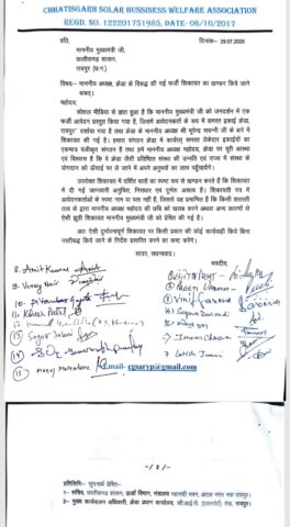 छत्तीसगढ़ सोलर बिजनेस वेलफेयर एसोसिएशन ने मुख्यमंत्री से आग्रह किया है कि इस तरह की फर्जी, गुमनाम और दुर्भावनापूर्ण शिकायतों को गंभीरता से न लेते हुए नस्तीबद्ध करने की कार्रवाई सुनिश्चित की जाए, जिससे ईमानदारी से कार्य कर रहे अधिकारियों और संस्थाओं का मनोबल बना रहे।