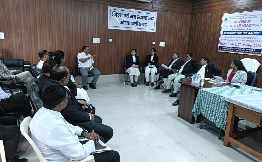 राष्ट्रीय विधिक सेवा प्राधिकरण नई दिल्ली तथा छ0ग0 राज्य विधिक सेवा प्राधिकरण बिलासपुर के निर्देशानुसार नेशलन लोक अदालत का आयोजन 13 सितम्बर दिन शनिवार को जिला एवं समस्त तालुका स्थित न्यायालयों में किया जा रहा है। माननीय प्रधान जिला एवं सत्र न्यायाधीश एवं अध्यक्ष, जिला विधिक सेवा प्राधिकरण कोरबा के मार्गदर्शन में जिला न्यायालय के वीडियो कान्फ्रेसिंग कक्ष में न्यायिक अधिकारियों, बीमा कंपनियों के अधिवक्ताओं एवं अधिकारियों की बैठक लेकर आवश्यक निर्देश दिए। आगामी 13 सितम्बर 2025 को आयोजित होने वाले नेशनल लोक अदालत के संबंध में न्यायालयों द्वारा चिन्हांकित प्रकरणों एवं अधिक से अधिक प्रकरणों के निराकरण करने के संबंध में चर्चा की गयी।