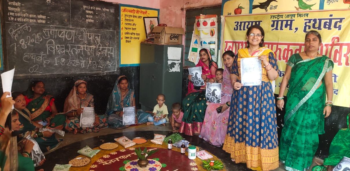 कार्यक्रम में गर्भवती एवं शिशुवती महिलाओं को स्तनपान का महत्व बताते हुए शतावरी चूर्ण, अश्वगंधा चूर्ण, सौभाग्य शुंठी पाक, द्राक्षासव आदि आयुर्वेदिक दवाइयों का वितरण किया गया। शिविर में डॉ. नम्रता सिंघानिया, फार्मासिस्ट गोंविद पैकरा, आंगबाड़ी कार्यकर्ता सहायिका, मितानिन सहित बड़ी संख्या मंहिलाएं उपस्थित रहीं।