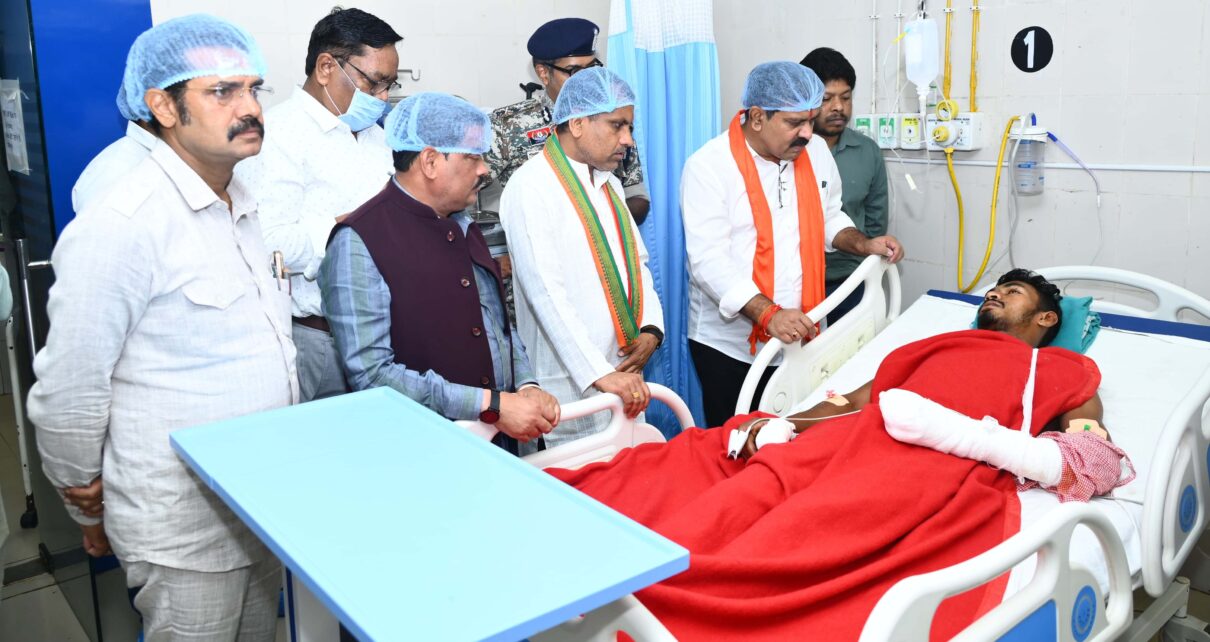 जगदलपुर, 08 अगस्त 2025/sns/- उप मुख्यमंत्री श्री विजय शर्मा ने शुक्रवार को सुबह मेडिकल कॉलेज हॉस्पिटल डिमरापाल पहुंचकर आईडी ब्लास्ट में घायल ग्रामीण तथा भालू के हमले में घायल जवान से रूबरू भेंटकर उनके स्वास्थ्य के बारे में जानकारी ली और इन दोनों का बेहतर उपचार सुनिश्चित किए जाने के निर्देश अधिकारियों एवं चिकित्सकों को दिए। साथ ही उप मुख्यमंत्री श्री शर्मा ने ग्रामीण प्रमोद ककेम तथा जवान बामन पोड़ियाम के शीघ्र स्वास्थ्य लाभ की कामना की। ज्ञात हो कि बीते 5 अगस्त को बीजापुर जिले के इलमिड़ी निवासी ग्रामीण प्रमोद ककेम नक्सलियों के द्वारा लगाए गए आईडी की चपेट में आने के कारण घायल हो गया, जिसे बेहतर उपचार के लिए बीजापुर जिला अस्पताल से मेडिकल कॉलेज हॉस्पिटल रिफर किया गया है। वहीं बीजापुर जिले के बासागुड़ा ईलाके में गश्त के दौरान गत 29 जुलाई को अचानक भालू के हमले में घायल जवान बामन पोड़ियाम को उपचार के लिए मेडिकल कॉलेज हॉस्पिटल में भर्ती किया गया है। मेडिकल कॉलेज हॉस्पिटल पहुंचे उप मुख्यमंत्री श्री शर्मा के साथ विधायक चित्रकोट श्री विनायक गोयल, महापौर श्री संजय पाण्डे एवं अन्य जनप्रतिनिधियों सहित कमिश्नर बस्तर श्री डोमन सिंह, आईजी बस्तर रेंज श्री सुंदरराज पी, पुलिस अधीक्षक श्री शलभ सिन्हा और जिला प्रशासन के अधिकारी एवं मेडिकल कॉलेज हॉस्पिटल के चिकित्सक मौजूद थे।