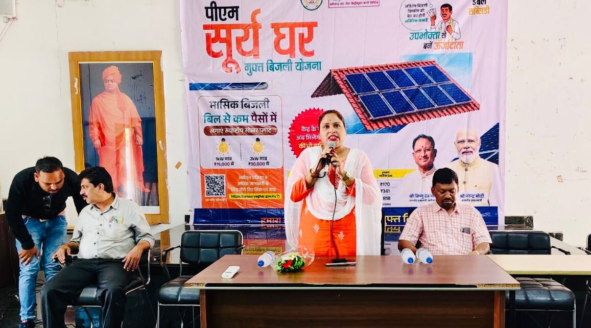 शिविर में मुख्य अतिथि के रूप में छत्तीसगढ़ राज्य महिला आयोग की सदस्य सुश्री दीपिका सोरी उपस्थित थी। उन्होंने उपस्थित नागरिकों को संबोधित करते हुए कहा कि सूर्यभारती मुफ्त बिजली योजना शासन की महत्वपूर्ण योजना है जिसका लाभ लेकर आप मुफ्त में बिजली प्राप्त कर सकते हैं। इसका मुख्य उद्देश्य घरेलू प्रयोजन वाले समस्त कनेक्शन धारकों का बिजली बिल शून्य करना है। इसमें शासन के द्वारा इकाई स्थापित करने पर अनुदान राशि भी दी जाती है। इसके साथ ही यह योजना 10 वर्षों के लिए न्यूनतम ईएमआई में भी उपलब्ध है। योजना का लाभ लेने हेतु पीएम सूर्यघर वेब पोर्टल पर ऑनलाइन आवेदन किया जा सकता है। आप सभी अधिक से अधिक संख्या में योजना का लाभ उठावें। कार्यक्रम में विद्युत विभाग के जिला अधिकारी श्री जे केरकेट्टा, जिला खेल अधिकारी श्री विरूपाक्ष पौराणिक तथा अन्य जनप्रतिनिधि और ग्रामीण उपस्थित थे।
