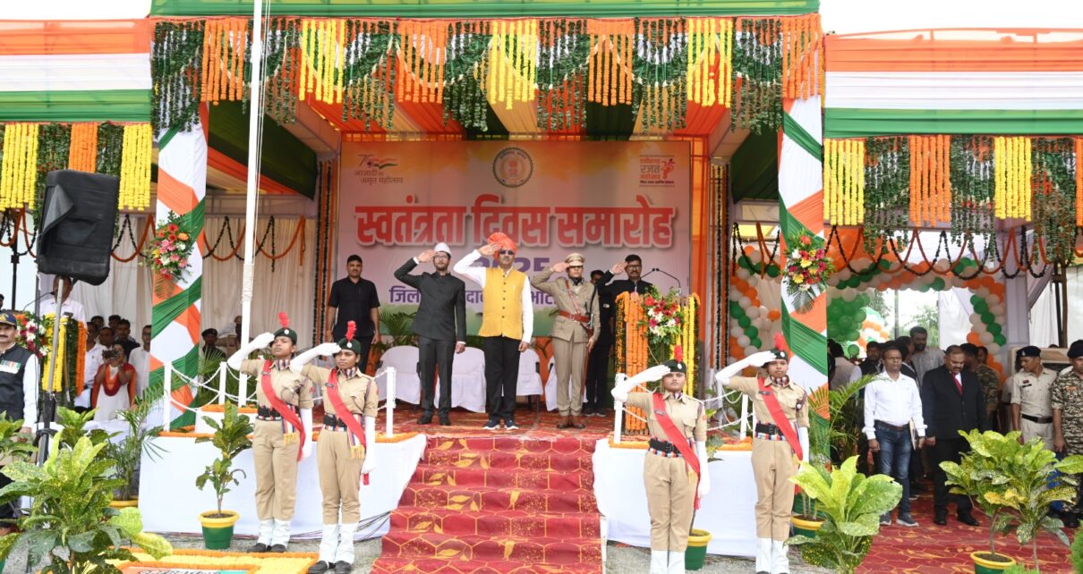 बलौदाबाजार,16 अगस्त 2025/sns/- 79 वां स्वतंत्रता दिवस समारोह जिले में अत्यंत हर्ष एवं उल्लास के साथ गरिमामय ढंग से मनाया गया। जिला स्तरीय समारोह के मुख्य अतिथि सांसद रायपुर बृजमोहन अग्रवाल ने स्थानीय पंडित चक्रपाणि हाईस्कूल मैदान में ध्वजारोहण किया। उन्होंने मुख्यमंत्री जी के संदेश का वाचन करते हुए राज्य सरकार की प्रमुख उपलब्धियां एवं भावी कार्य-योजनाओं की जानकारी दी। श्री अग्रवाल ने इस अवसर पर स्वतंत्रता संग्राम सेनानियों और शहीदों के परिजनों का कुशलक्षेम पूछते हुये शाल एवं श्रीफल भेंटकर सम्मानित किया। इस अवसर पर उन्होंने शासकीय योजनाओं में उत्कृष्ट कार्य के लिए 64 शासकीय कर्मियों का भी जिला प्रशासन की ओर से सम्मानित कर शुभकामनाएं दी।