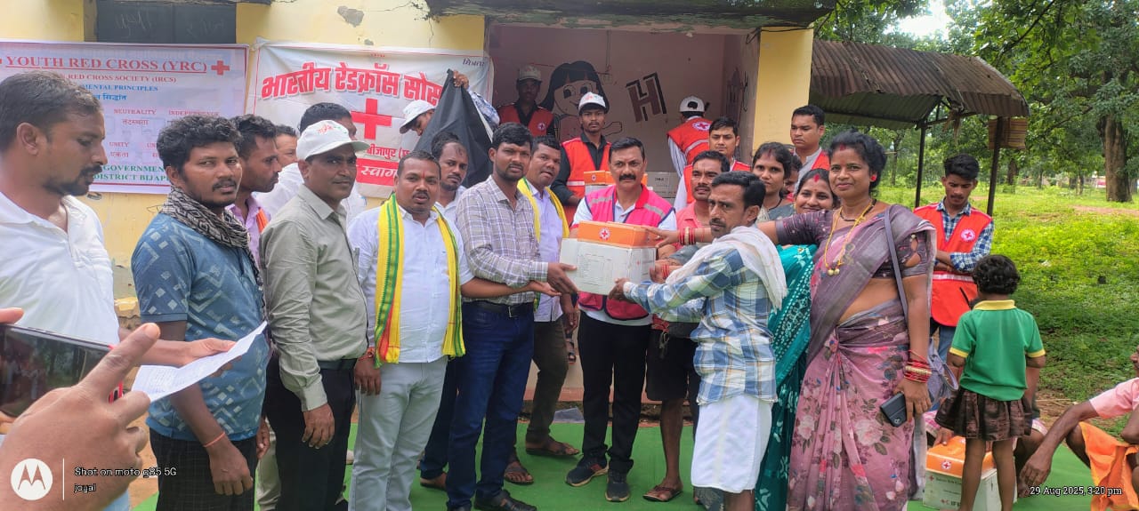 बीजापुर, 01 सितम्बर 2025/sns/ – बीजापुर जिले के बाढ़ प्रभावित क्षेत्र भैरमगढ़ ब्लाॅक के सुरोखी गांव के ग्रामीण परिवारों को कलेक्टर श्री संबित मिश्रा के दिशा-निर्देश में रेडक्राॅस सोसायटी बीजापुर द्वारा 18 नग किचन सेट एवं हाईजीन किट का वितरण स्थानीय जनप्रतिनिधियों सरपंच, उप सरपंच के माध्यम से कराया गया।