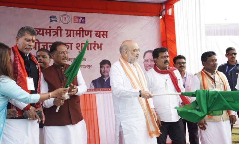 रायपुर 4 अक्टूबर 2025/ बस्तर से नक्सलवाद का अंत शीघ्र होगा और क्षेत्र में शांति स्थापित कर हम विकास के नए आयाम गढ़ेंगे। बस्तर और सरगुजा क्षेत्र के सुदूर अंचलवासी अब विकास से विश्वास तक की यात्रा में सहभागी बनकर विकसित छत्तीसगढ़ के निर्माण में अपनी भूमिका निभाएंगे। केंद्रीय गृह मंत्री श्री अमित शाह ने जगदलपुर से मुख्यमंत्री ग्रामीण बस योजना का शुभारंभ करते हुए यह बात कही। इस अवसर पर केंद्रीय गृह मंत्री श्री अमित शाह और मुख्यमंत्री श्री विष्णु देव साय ने यात्री बसों को हरी झंडी दिखाकर रवाना किया और क्षेत्रवासियों को इस विशेष पहल के लिए शुभकामनाएं दीं।