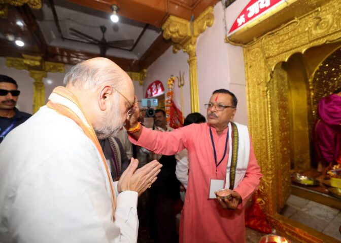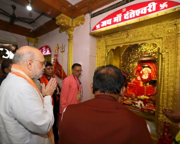 Raipur, October 4, 2025/ Union Home Minister Amit Shah and Chief Minister Vishnu Deo Sai offered prayers at the revered Maa Danteshwari temple in Jagdalpur. They sought the blessings of the deity for peace, prosperity and well-being of the nation and the state.