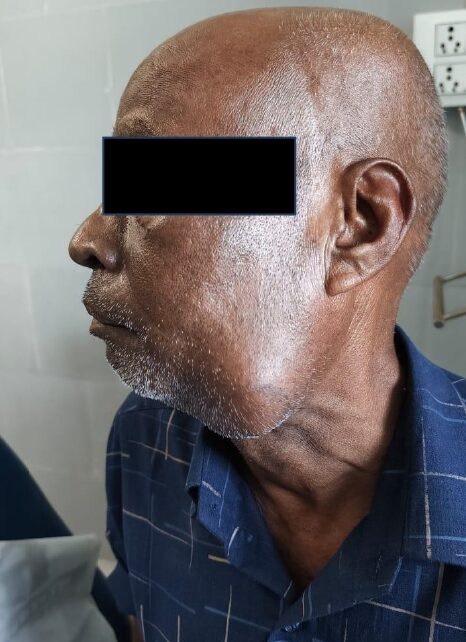 मरीज का कैंसर इतना बढ़ गया था, कि गले में उपस्थित लिंफ नोड में सूजन काफी बड़ा हो गया था। जिसका साइज 7×6 सेमी बढ़ गया था। जांच में पाया गया की कैंसर की अंतिम स्टेज से ग्रसित होने की पुष्टि हो गई। दंत चिकित्सा विभाग के चिकित्सकों ने सर्जरी का निर्णय लिया, इलाज के लिए आवश्यक खून जांच एक्स-रे और सिटी स्केन कराकर सुनियोजित तरीके से 7-8 घंटे की जटिल सर्जरी कर पूरा किया गया। इस सर्जरी को तीन भागों में किया गया। इसमें कैंसर के साथ संक्रमित जबड़े के हिस्से को निकाला गया। कैंसर जो गर्दन में फैल गया था, उसको निकाला गया और अंत में कैंसर को निकालने के बाद खाली जगह पर छाती से मांस जिसे पीएमएमसी फ्लैप कहते हैं, का टुकड़ा निकालकर लगाकर सर्जरी पूरी की गई।