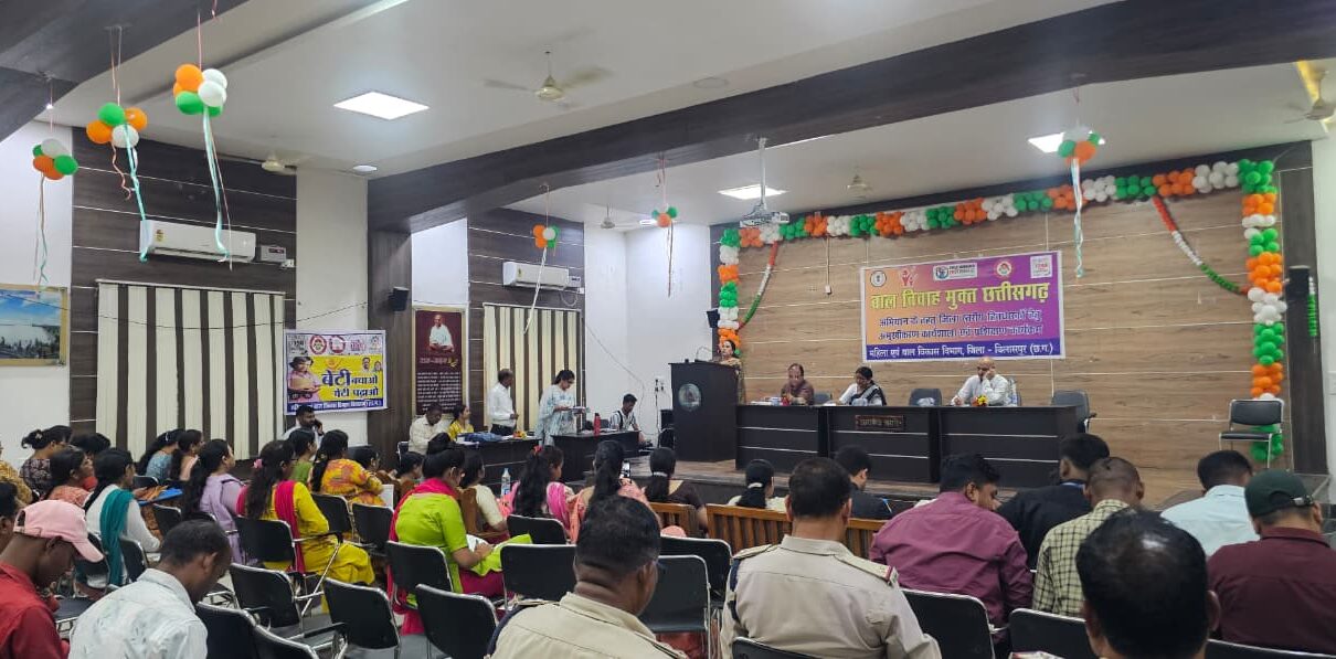 बिलासपुर, 09 अक्टूबर 2025/sns/- बाल विवाह मुक्त छत्तीसगढ़ अभियान के अंतर्गत उन्मुखीकरण कार्यशाला सह प्रशिक्षण कार्यक्रम का आयोजन जल संसाधन विभाग के प्रार्थना सभा भवन में किया गया। जिला कार्यक्रम अधिकारी श्री सुरेश सिंह एवं जिला महिला एवं बाल विकास अधिकारी श्री सूर्यकांत गुप्ता के मार्गदर्शन में आयोजित कार्यक्रम में बाल विवाह प्रतिषेध अधिनियम 2006 की विस्तृत जानकारी दी गई। साथ ही बताया गया कि 18 वर्ष से कम आयु की लड़की एवं 21 वर्ष से कम आयु के लड़के का विवाह बाल विवाह की श्रेणी में आता है। बाल विवाह करने कराने या उसमें सहयोग देने वाले को दो वर्ष की सजा अथवा एक लाख रुपये जुर्माना अथवा दोनों से दंडित किया जा सकता है। राज्य शासन द्वारा जारी अधिसूचना के अनुसार महिला एवं बाल विकास विभाग के सभी बाल विकास परियोजना अधिकारियों, पर्यवेक्षको एवं ग्राम पंचायत सचिवों को बाल विवाह प्रतिषेध अधिकारी के रूप में नामित किया गया है। कार्यशाला में बाल विवाह प्रतिषेध अधिकारी, समाज प्रमुख गैर-शासकीय संगठनों के प्रतिनिधि, मंदिरों के पुजारी, विवाह आयोजक, विवाह भवन सचालक, प्रिटिंग प्रेस, टेंट, बैंड, एवं केटरिंग सेवा प्रदाताओं की सहभागिता रही।