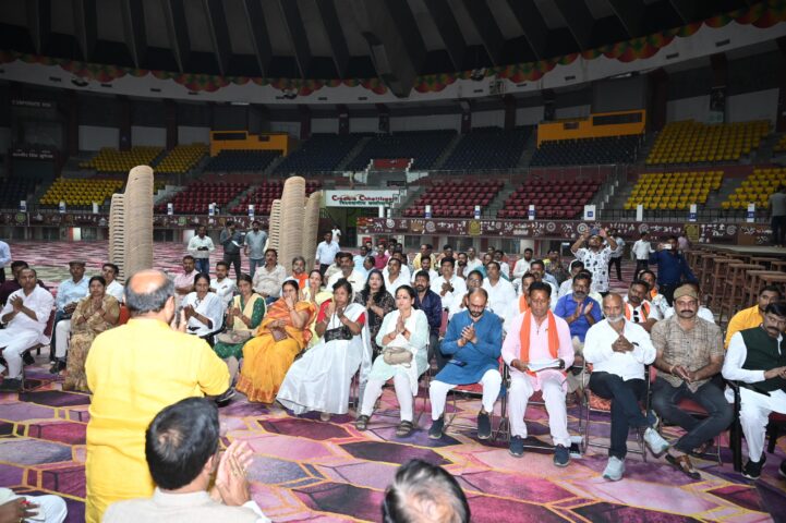 रायपुर। “वंदे मातरम्” के 150 वर्ष पूर्ण होने के पावन अवसर पर आज सरदार बलबीर सिंह जुनेजा इनडोर स्टेडियम में एक ऐतिहासिक एवं महत्वपूर्ण बैठक आयोजित की गई। बैठक में आगामी कार्यक्रम की रूपरेखा पर विस्तृत चर्चा करते हुए आयोजन को भव्य, अनुशासित और गरिमामय बनाने हेतु सभी आवश्यक तैयारियों को अंतिम रूप दिया गया।