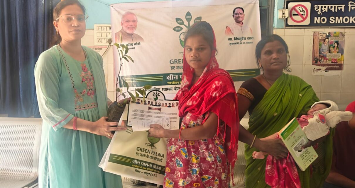 रायपुर, 08 नवंबर 2025/sns/- मुख्यमंत्री श्री विष्णुदेव साय की पर्यावरण संरक्षण हेतु प्रतिबद्धता के अनुरूप रायपुर जिला प्रशासन द्वारा “प्रोजेक्ट ग्रीन पालना” अभियान को प्रभावशाली ढंग से आगे बढ़ाया जा रहा है। इस अभिनव पहल के तहत शासकीय अस्पतालों में प्रसव उपरांत माताओं को फलदार पौधे भेंट स्वरूप दिए जा रहे हैं, ताकि एक नई ज़िंदगी के आगमन के साथ एक नया वृक्ष भी धरती पर जन्म ले।