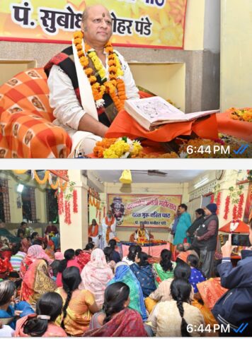 प्रेस विज्ञप्ति/ प्रकाशनार्थ रायपुर , स्थानीय ब्रम्हपुरी पुरानी बस्ती स्थित दत्तात्रेय मंदिर मे 27. नवंबर से जारी दत्तात्रेय जयंति महोत्सव के षष्ठम् दिवस दौपहर सिविल लाइंस महिला मंडल से शोभा जोशी, सुनंदा खानखोजे , चित्रा फड़के, जय श्री केलकर मीना विभूते, वीना केलकर , , राखी नामदेव, द्वारा दत्ता चे भजन “रात्रदिवसा देवा तुमची मूर्ति ध्यानात स्वप्नात आले माईचा गुरुदेव दत्त “, मेरी झोपड़ी के भाग आज खुल जाएंगे श्याम आएँगे व आज अगंना में अंबा नाचे रे जगदम्बा नाचे रे साथियों द्वारा प्रवाहित भजन गंगा की धारा में डूबकर उपस्थित भक्त गण भाव विभोर होकर झूमने लगे ..,समिति की महिलाओं में भजन गाने की होड़ रही ..कार्यक्रम का संचालन हेमा ताई बर्वे व करुणा मुंदडा द्वारा किया गया, सुबह पं. सुबोध मनोहर पंडे द्वारा दत्त गुरु चरित की महिमा का बखान करते हुए बताया कि दत्त गुरु के स्मरण मात्र से कृपा आनी शुरू हो जाती है ट्रस्ट के अध्यक्ष हरि वल्लभ अग्रवाल व सचिव चेतन दंडवते ने बताया कि संपूर्ण छतीसगढ से दर्शनार्थी मंदिर गुरु पूजन के लिए पहुँच रहे है दिन भर देर रात्रि तक दर्शनार्थियों का ताँता लगा हुआ है पुरानी बस्ती दत्तात्रेय मंदिर में दर्शन पूजन अर्चन करने वालो का गंभीर रोग ठीक होने सहित बीसों वर्षो से संतान रहित दंपति को संतान की भी प्राप्ति हुई है कल सप्तम दिवस 03 दिसंबर को साईं मंदिर वल्लभ नगर समिति द्वारा भजनों की धारा प्रवाहित की जावेगी.. सुबह दत्त गुरु चरित कथा पं. सुबोध मनोहर पंडे द्वारा किया जावेगा, जन्म जयंति उत्सव 04 दिसंबर को होगा जबकि 05 दिसंबर को महा- भंडारा , 06 दिसम्बर को गोपाल काला उत्सव आयोजित है।