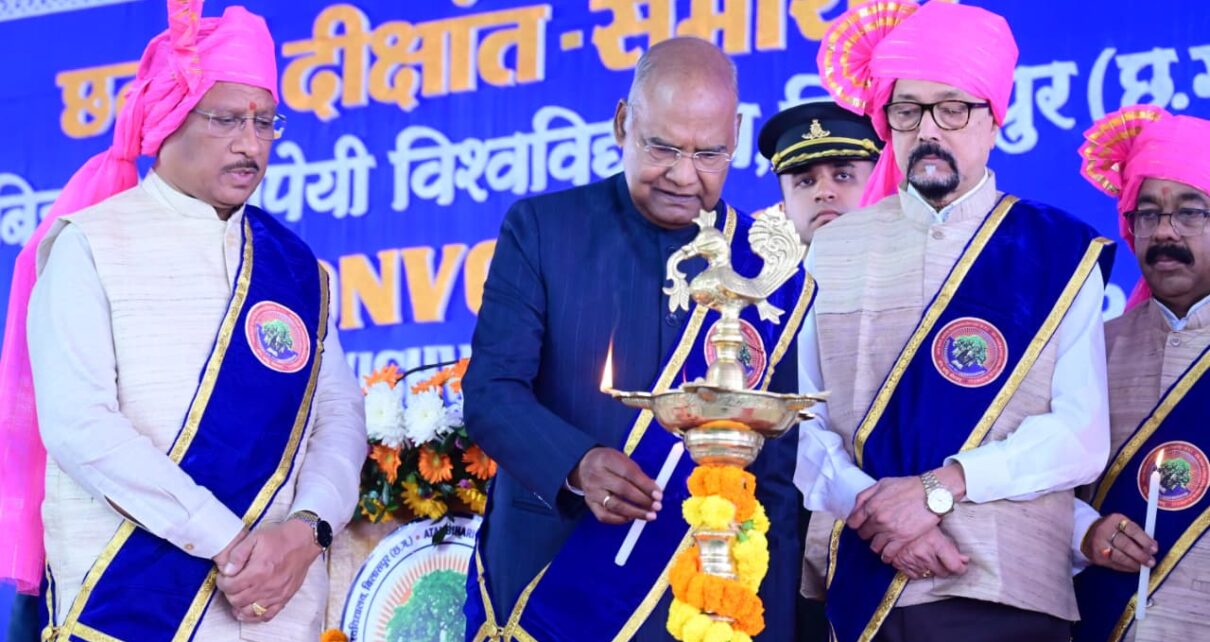 रायपुर, 04 दिसम्बर 2025/sns/-अटल बिहारी वाजपेयी विश्वविद्यालय बिलासपुर के छठवें दीक्षांत समारोह का आयोजन आज पूर्व राष्ट्रपति श्री रामनाथ कोविंद के मुख्य आतिथ्य में गरिमामय वातावरण में किया गया। कार्यक्रम की अध्यक्षता राज्यपाल श्री रमेन डेका ने की। अति विशिष्ट अतिथि के तौर पर मुख्यमंत्री श्री विष्णु देव साय उपस्थित रहे। समारोह में 64 शोद्यार्थियों को शोध उपाधि, 92 गोल्ड मेडल एवं 36950 स्नातक एवं स्नातकोत्तर उपाधि दी गई।