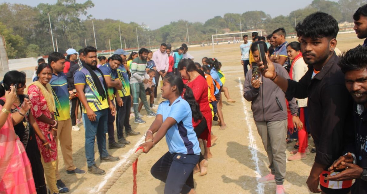 सारंगढ़-बिलाईगढ़, 27 दिसंबर 2025/sns/-सारंगढ़ के खेलभांठा मैदान में जिला स्तरीय सांसद खेल महोत्सव 2025 को आयोजन किया गया, जिसमें अतिथि के रूप में कलेक्टर डॉ संजय कन्नौजे, सांसद प्रतिनिधि अरूण गुडडू यादव, सत्ताधारी दल के जिला अध्यक्ष ज्योति पटेल, जगन्नाथ केशरवानी, भुवन मिश्रा, दुर्गा प्रसाद ठाकुर, संदीप शर्मा उपस्थित थे। अतिथियों ने सभी खिलाड़ियों और व्यायाम शिक्षक ममता साहू, पूजा अकेला, श्रुति चौबे से पंक्ति में क्रमवार परिचय लेकर खेल का शुभारंभ किया। खेल की शुरूआत रस्साकसी से हुआ, जो बेहद खुशनुमा और टीम की जोर लगाकर अजमाइश करने के लिए उत्साहवर्धक था। इसके बाद 100 मीटर, 200 मीटर दौड़, गेड़ी दौड़, फुगड़ी, बैडमिंटन, कबड्डी, खोखो, बॉलीबॉल का आयोजन किया गया। जिला पंचायत सीईओ इंद्रजीत बर्मन, एसडीएम वर्षा बंसल, प्रभारी खेल अधिकारी सह डिप्टी कलेक्टर शिक्षा शर्मा, सहायक आयुक्त आदिम जाति विकास विभाग बद्रीश सुखदेवे, उप संचालक समाज कल्याण विभाग, व्यायाम शिक्षक फकीरा यादव, सुरेन्द्र पैकरा, अखिलेश मिश्रा, राजाराम उरांव, शिव बघेल, दिनेश पटेल, यशवंत और संगीता यादव आदि उपस्थित थे।