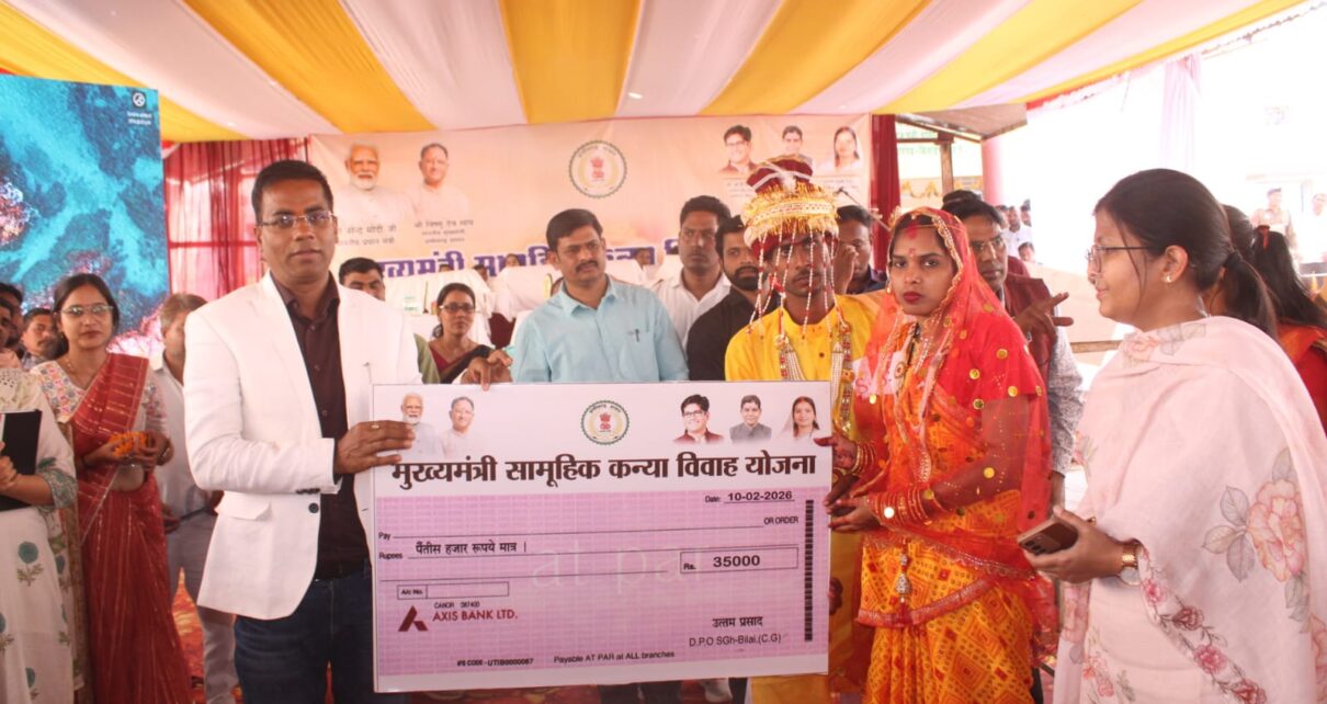 सारंगढ़ बिलाईगढ़, 10 फ़रवरी 2026/sns/- मुख्यमंत्री कन्या विवाह योजना के तहत कृषि उपज मंडी प्रांगण सारंगढ़ में 200 जोडों ने सामूहिक विवाह का किया। अतिथि जिला पंचायत अध्यक्ष संजय भूषण पाण्डेय, कलेक्टर सहित जिला प्रशासन के अधिकारी कर्मचारी, पालक ने वर वधू को आर्शीवाद प्रदान किया। कलेक्टर डॉ संजय कन्नौजे ने सभी वर वधु को विवाह की बधाई और शुभकामनायें देते हुए कहा कि, यह शुभ घड़ी है। सभी वैवाहिक जीवन में खुश रहें, खुशहाल रहें। भगवान सबका कल्याण करें। 200 जोड़े विवाह के बंधन में बंधे हैं। समाज में विवाह के खर्च ज्यादा है, वहीं मुख्यमंत्री सामूहिक कन्या विवाह से राज्य सरकार जिले के सभी पात्र वर वधु को विवाह के बंधन में बंधने के लिए अवसर देता है। कलेक्टर ने 50 हजार रूपये में से 35 हजार की राशि का प्रतीकात्मक चेक वर वधुओं को प्रदान किया, जो उनके बैंक खाता में शासन द्वारा दिया जाएगा।