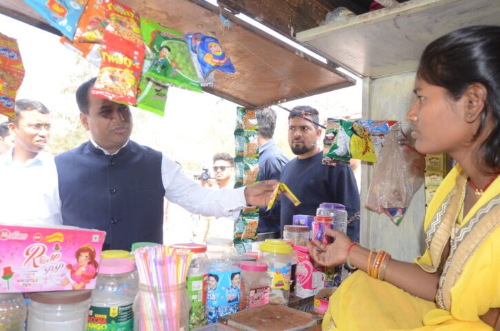 रायपुर, 12 फरवरी 2026/ मंदिरहसौद दौरे के दौरान कलेक्टर डॉ. गौरव सिंह ने मंदिरहसौद निरीक्षण के दौरान शासकीय प्राथमिक शाला के सामने एक पान ठेले पर तंबाकू बिकते पाए जाने तत्काल कार्रवाई करते हुए ठेला सील करने के निर्देश दिए। उन्होंने कहा कि स्कूलों के आसपास प्रतिबंधित सामग्री की बिक्री ना हो। कलेक्टर ने नगर पालिका परिषद मंदिरहसौद मार्ग पर सड़क पर मकान निर्माण सामग्री रखे जाने पर स्वयं वाहन से उतरे और मौके पर जब्ती कर जुर्माना लगाने के निर्देश दिए। उन्होंने अधिकारियों को नियमित निरीक्षण कर यातायात एवं नागरिक सुविधा में बाधा बनने वाली गतिविधियों पर सख्ती बरतने को कहा।