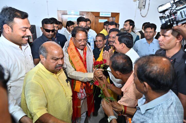 रायपुर हेलीपैड पर ऐतिहासिक क्षण: पुरंदर मिश्रा ने लड्डुओं से तौलकर किया मुख्यमंत्री का सम्मान