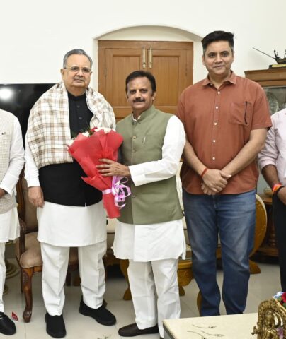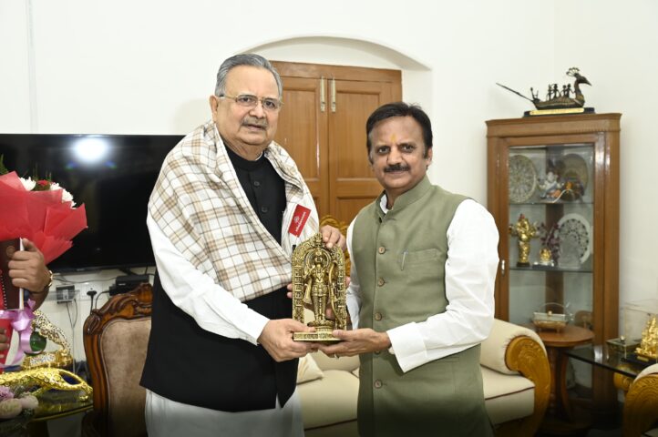 विधानसभा अध्यक्ष डॉ. रमन सिंह से मध्यप्रदेश के डिप्टी सीएम श्री राजेन्द्र शुक्ल ने की सौजन्य भेंट