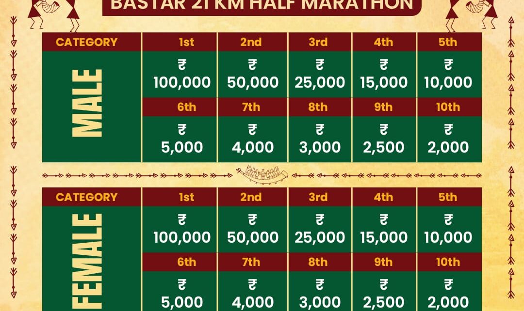 इस स्वर्णिम अवसर का हिस्सा बनने के लिए प्रतिभागी पोस्टर पर दिए गए आधिकारिक क्यूआर कोड के माध्यम से अपना पंजीकरण सुनिश्चित कर सकते हैं। इसके साथ ही www.bastarheritage.run के माध्यम से भी पंजीयन कर सकते हैं।जिला प्रशासन द्वारा आयोजित इस मैराथन का उद्देश्य खेल के माध्यम से बस्तर की विरासत को चमकाना है। यदि आप भी अपनी रफ्तार के दम पर इन बड़े पुरस्कारों को अपने नाम करना चाहते हैं, तो 22 मार्च की सुबह लालबाग मैदान में अपनी उपस्थिति दर्ज कराएं। विस्तृत जानकारी या सहायता के लिए हेल्पलाइन नंबर 9244079533 पर संपर्क किया जा सकता है।