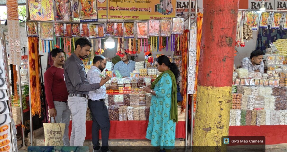इसी क्रम में रतनपुर स्थित मां महामाया मंदिर में श्रद्धालुओं को सुरक्षित एवं गुणवत्तापूर्ण प्रसाद उपलब्ध कराने के उद्देश्य से प्रसाद कक्ष का निरीक्षण किया गया। भोग प्रमाणन (सर्टिफिकेट) हेतु खाद्य पदार्थों के नमूने लेकर परीक्षण के लिए भेजे गए। मंदिर परिसर के बाहर लगे ठेले और गुमटियों की भी जांच की गई, जहां अखाद्य रंग से तैयार चाट को नष्ट कराते हुए संचालकों को खाद्य सुरक्षा मानकों की जानकारी दी गई। खाद्य सुरक्षा विभाग ने स्पष्ट किया है कि यह अभियान लगातार जारी रहेगा, ताकि आमजन को सुरक्षित एवं गुणवत्तापूर्ण खाद्य सामग्री उपलब्ध हो सके।
