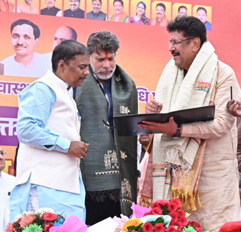 रायपुर, 21 मार्च 2026/ वन एवं जलवायु परिवर्तन मंत्री श्री केदार कश्यप आज छत्तीसगढ़ आदिवासी, स्थानीय स्वास्थ्य परंपरा एवं औषधि पादप बोर्ड के नवनियुक्त उपाध्यक्ष श्री अंजय शुक्ला के पदभार ग्रहण समारोह में शामिल हुए। यह कार्यक्रम राज्य वन अनुसंधान एवं प्रशिक्षण संस्थान परिसर, जीरो प्वाइंट, रायपुर में आयोजित किया गया। इस अवसर पर तकनीकी शिक्षा मंत्री श्री गुरु खुशवंत साहेब, राजस्व मंत्री श्री टंकराम वर्मा , विधायक श्री किरण सिंह देव, विधायक श्री अनुज शर्मा और विधायक श्री इंद्रकुमार साहू अतिविशिष्ट अतिथि के रूप में उपस्थित रहे।