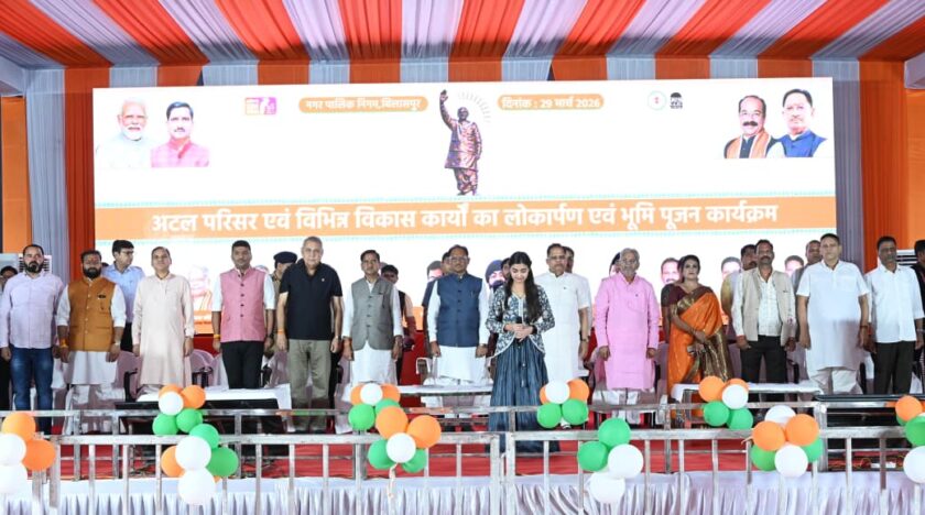 बिलासपुर, 29 मार्च 2026/प्रदेश के मुख्यमंत्री श्री विष्णुदेव साय ने बिलासपुर प्रवास के दौरान शहर को विकास की नई दिशा देने महत्वपूर्ण सौगातें दी। इस अवसर उन्होंने अरपा रिवर व्यू के पास नवनिर्मित अटल परिसर में आयोजित समारोह में 26.93 करोड़ की लागत के विभिन्न निर्माण कार्यों का लोकार्पण एवं भूमिपूजन किया।